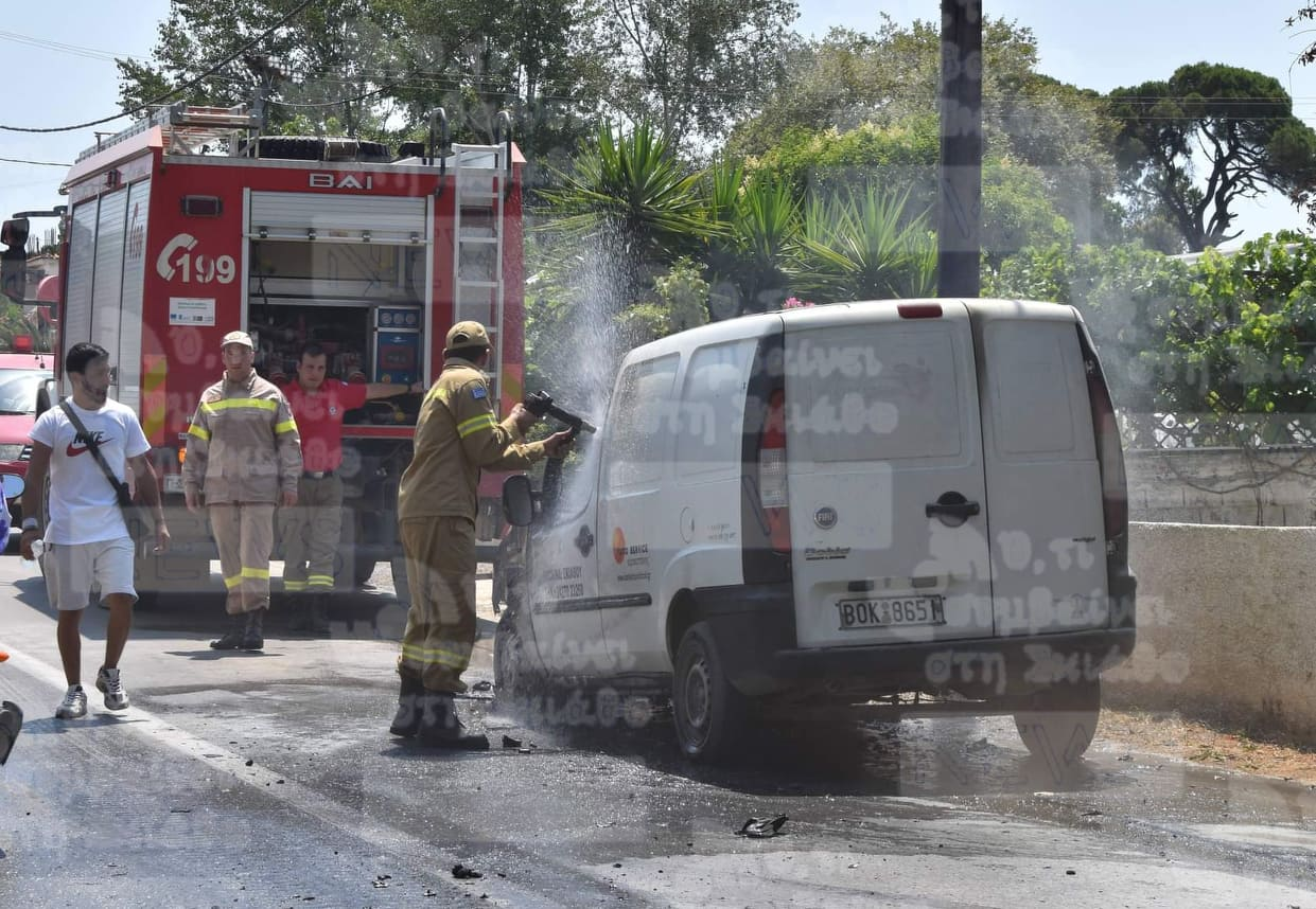 Φωτιά σε αυτοκίνητο διανομής στην περιοχή Τρούλο ξέσπασε από βλάβη στην μηχανή . Ο οδηγός του VAN είναι καλα .
